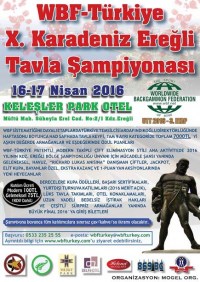 Dünya Tavla Federasyonu (WBF-Worldwide Backgammon Federation) Türkiye Organizasyonu'nca düzenlenen 10.Karadeniz Ereğli Tavla Şampiyonası16-17 Nisan Tarihlerinde Zonguldak'ın Ereğli ilçesi Keleşler Park Otel'de gerçekleştirilecek.