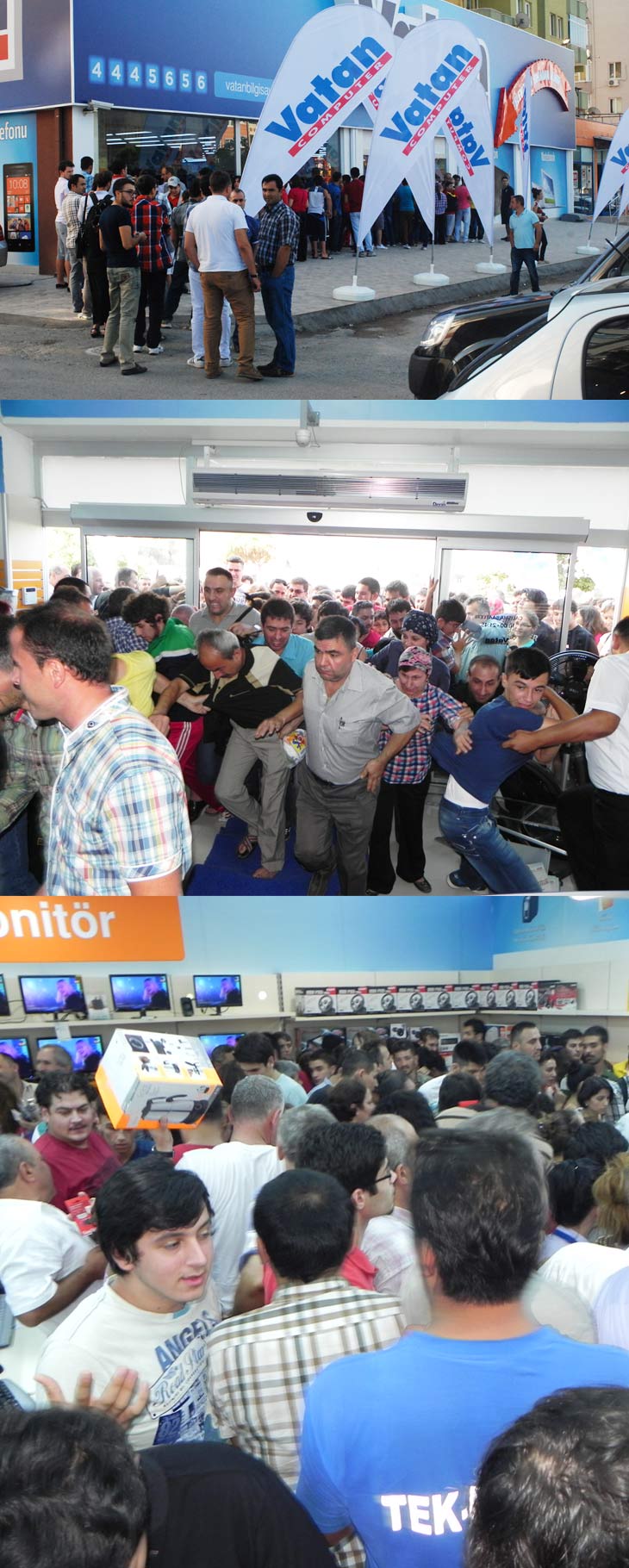 Hasan Vatan'ın konuşmasının ardından açılış gerçekleştirildi. Güvenlik görevlileri kapıyı açmakta zorlanırken ezilme tehlikesi geçirdi. Vatandaşlar mağazaya girmek için birbirlerini ezerken X RAY cihazı parçalara ayrıldı. Müşteriler içeriye girerken bazı elektronik ürünleri yere düşürdü. Bin 600 metrekarelik alan bir anda doldu taştı. Adım atacak yerin kalmadığı mağazada vatandaşlar istedikleri ürünleri bulabilmek için reyon reyon gezdi. Açılışa özel yapılan 14 bin teknoloji ürününde yüzde 30 indirime teknoloji severler büyük ilgi gösterdi.