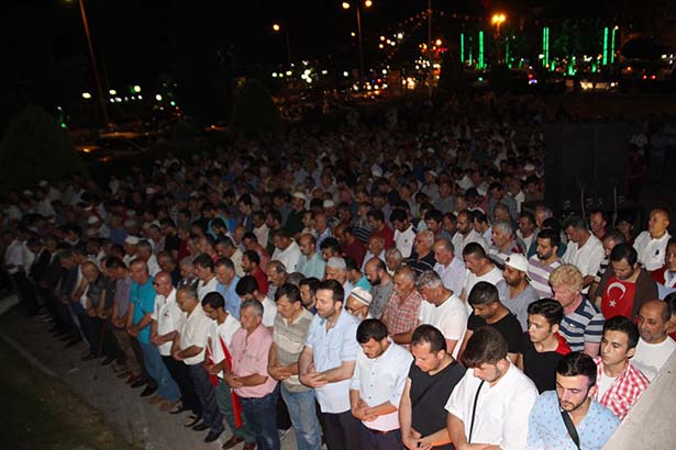Zonguldak'ın Ereğli ilçesinde Fethullahçı Terör Örgütü (FETÖ) Paralel Devlet Yapılanması (PDY) tarafından gerçekleştirilen darbe girişimi sırasında hayatını kaybeden 161 kişi için binlerce vatandaşın katılımı ile önce Mevlid-i Şerif okutuldu, daha sonra ise Gıyabi cenaze namazı kılındı.