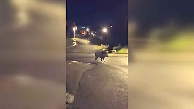 Olay ilçeye bağlı Bağlık Mahallesi 1 Nolu Sakindere Sokak üzerinde meydana geldi. Dün akşam saatlerinde evine giden mahalleli, bir anda karşısında Yaban domuzunu gördü. Mahalle sakini o anları cep telefonu ile görüntüledi. Kısa süre mahallede dolaşan yaban domuzları daha sonra geldikleri istikametten geri gitti.
