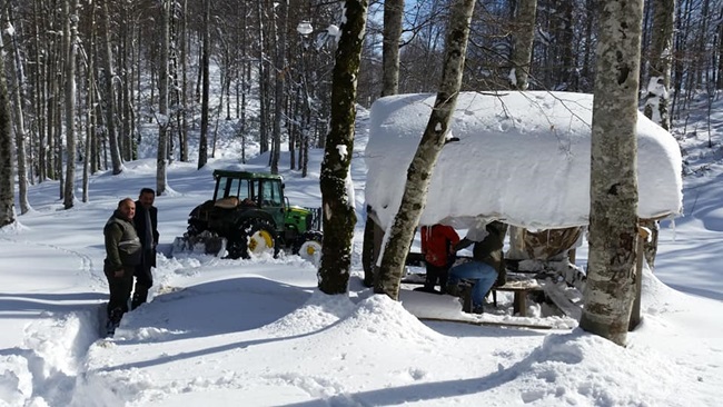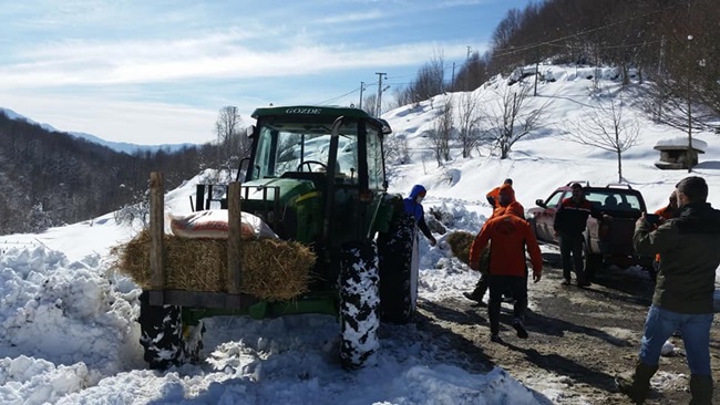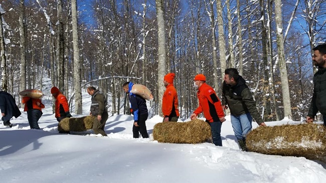 Ereğli’ de uzun süre sonra kendisini hissettiren yoğun kar yağışı sonrasında yüksek kesimlerde kar kalınlığı yaklaşık 2 metreyi bulurken, kardan dolayı yiyecek bulmakta zorlanan yaban hayvanları için Zonguldak Milli Parklar Müdürlüğü, Domuz avcıları ekibi ve Karakavuz köyü Muhtarı Bilgin İlik devreye girdi. Zonguldak Milli Parklar Müdürü İdris Tetik’in de katılımı ile Bilgin İlik ve Domuz avcıları ekibinden oluşan 15 kişilik ekip Karakavuz Köyü İkioluk mevkiinde 10 ayrı noktaya saman ve yem bıraktı. Ekipler zorlu kış şartlarında yaklaşık 5 kilometre traktör ve 1 kilometre yürüdükten sonra yemleri bırakabildiler.