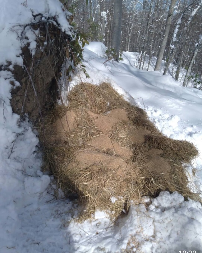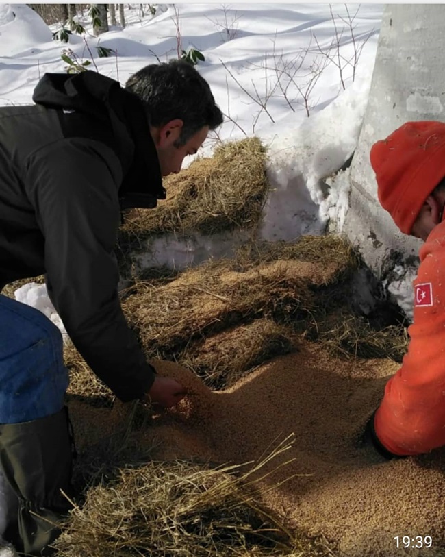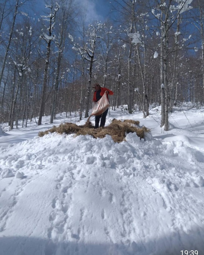Zonguldak Milli Parklar Müdürlüğü, Domuz Avcıları Ekibi ve Karakavuz köyü Muhtarı Bilgin İlik’in koordinesinde Karakavuz köyünde dağlık alana saman ve yem dağıtımı gerçekleştirildi.