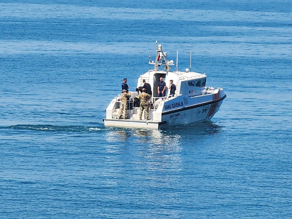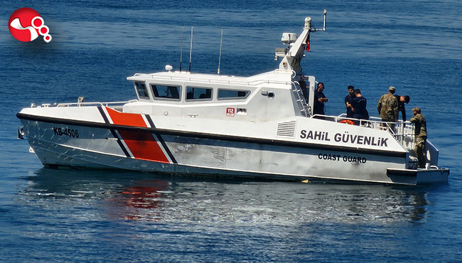 Sahil Güvenlik botu bölgeye yanaştı. Ekiplerin çalışmaları sürüyor.