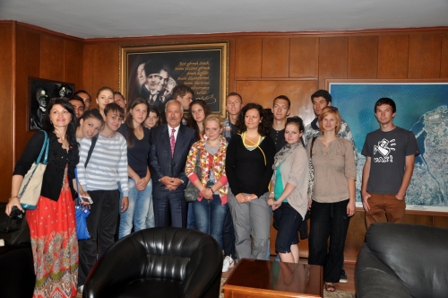Avrupa Birliği (AB) Bakanlığı´nca başlatılan ´Yaşlılar Gençler Elele´ projesi kapsamında Hırvatistan, Romanya, Çek Cumhuriyeti ve Litvanya?dan Zonguldak?a gelen 23 öğrenci, Zonguldak Belediye Başkanı Muharrem Akdemir?i makamında ziyaret etti.