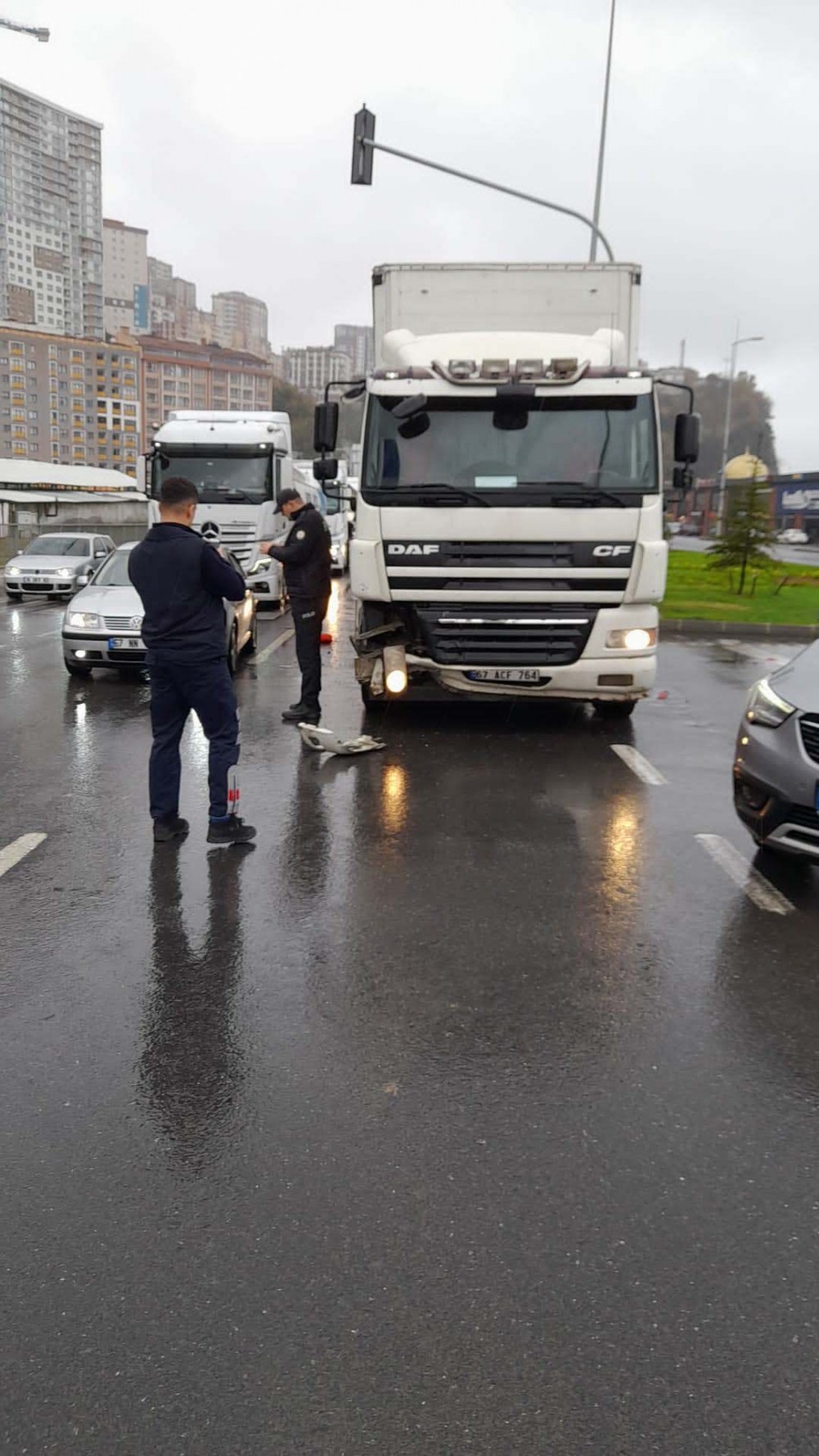 İddiaya göre sağanak yağış nedeniyle sürücüsünün kontrolünden çıkan 67 ACF 764 plakalı tır, Opel marka otomobile çarptı. Kazada yaralan olmazken araçlarda maddi hasar meydana geldi.