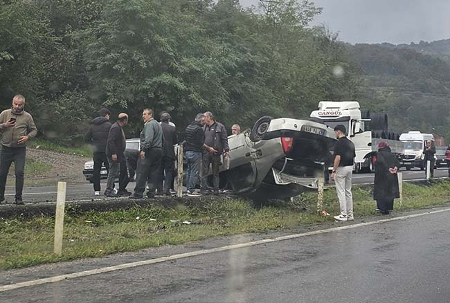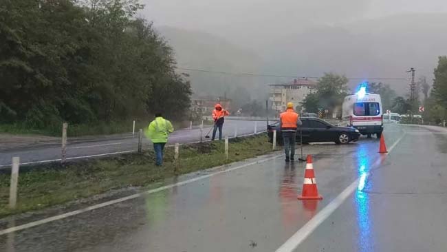 Zonguldak-Ankara kara yolunda meydana gelen kazada, yağışlı havanın etkisiyle yolun kayganlaşması sonucu bir otomobil yoldan çıkarak kazaya neden oldu.