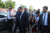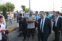 alanından kalkan AK Partili Belediye Başkanı Hüseyin Uysal ve beraberindeki