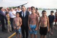 geçilmeden önce Su Ürünleri Kooperatifi Başkanı Firuz Yılmaz ve yarışmacılar,