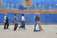 Batı Karadeniz Bölgesi Akçakoca'da sağanak yağış nedeniyle fındık işçileri bir günlük yağmur tatili yaparak Akçakoca'yı gezdiler.
