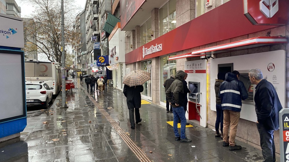 Zonguldak’ta yağmurla hazırlıksız yakalanan vatandaşlar yağmurdan korunmak için bankalara ve dükkanlara sığındı.