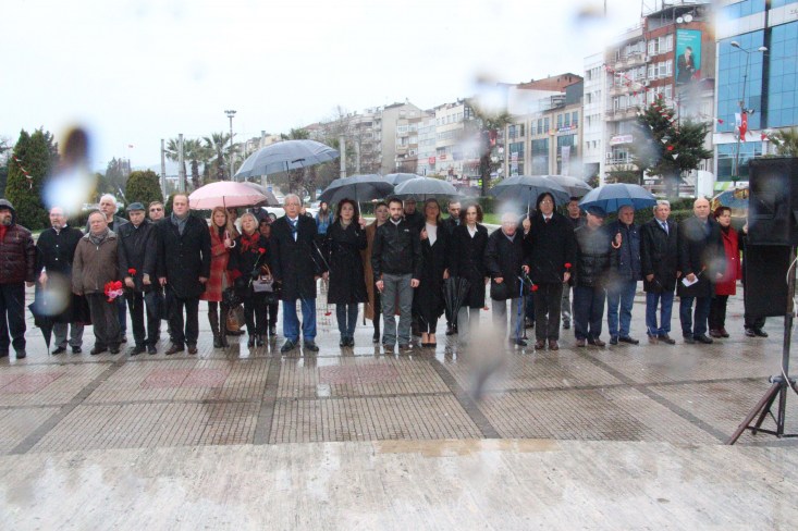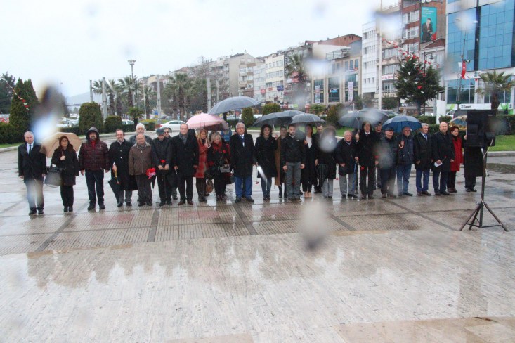 Yağmur altında icra edilen tören kapsamında Karadeniz Ereğli Hekimler ve Eczacılar Dayanışma Derneği ile ilçedeki özel ve kamu hastanelerinin temsilcileri Atatürk Anıtı'na çelenk sundu. Hekim ve eczacılar törende saygı duruşunda bulunuldu, İstiklal Marşı okundu