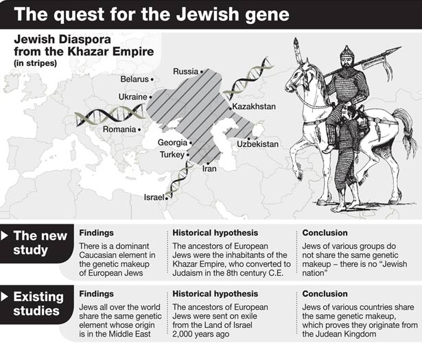 Hürriyet'in haberine göre;ABD'de bulunan John Hopkins Üniversitesi'nde görevli gen bilim uzmanı Yahudi asıllı Eran Elhaik, Aşkenaz Yahudileri'nin Hazar kökenli olduğu tezinin daha geçerli olduğunu öne sürdü."Genome Biology and Evolution"adlı dergide"Avrupa Yahudilerinin Soyunun Kayıp Halkası: Ren ve Hazar Hipotezlerinin Karşılaştırılması"başlıklı bir çalışma yayımlayan Elhaik, sekizi Yahudi, 74'üyse Yahudi olmayan gruplardan gelen bin 287 kişinin gen analizini coğrafi ve tarihsel göç yolları açısından değerlendirdi.