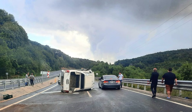 Karadeniz Ereğli-Zonguldak karayolunun Ereğli’ye bağlı Sücüllü Köyü Kavşağı yakınlarından yerel yağış geçişi nedeniyle ıslanan yolda sürücünün direksiyon hâkimiyetini kaybetmesi sonucu kayarak yan yatan kamyonet, önündeki araca çarparak durabildi. Çarptığı araçta aynı istikametteki bir başka otomobile çarptı.