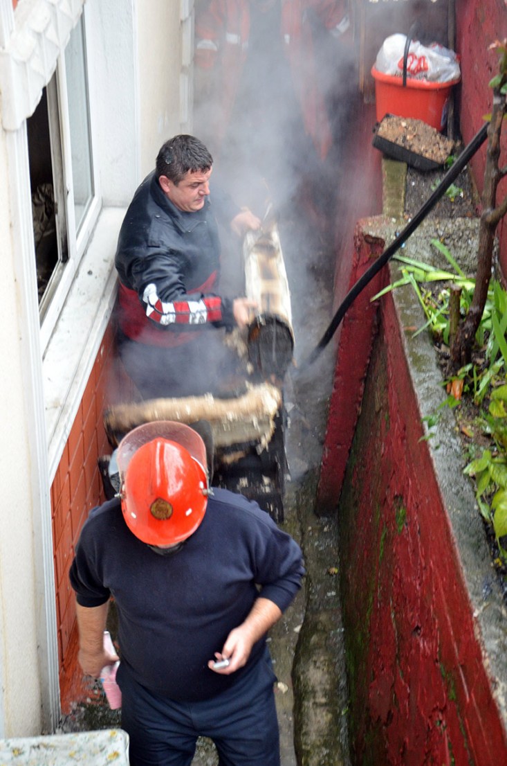 Zonguldak'ta bir evde sobadan çıkan yangını, o esnada öğlen yemeğine gelen evin oğlu fark etti. İşyerinden çıkıp evine gelen genç kadın ise yanan eşyalarını görünce hüngür hüngür ağladı.