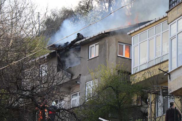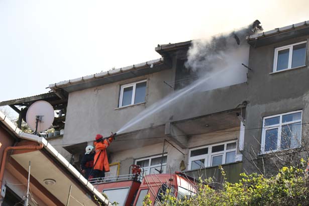 etti. 3 katlı evin çatı katında çıkan yangın, itfaiye ekiplerinin uzun