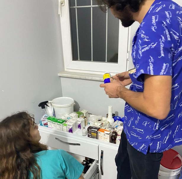 Orman yangını sırasında zarar gören yaban hayvanları, çiftlik hayvanları ve sokak hayvanlarını gibi bir çok canlıya tıbbi yardım ve mama desteği vermek üzere kliniğindeki tüm ilaç ve ekipmanlar ile yola çıkan ekip, can kurtarmaya devam ederken diğer yandan da araç ile birlikte çevre köylere giderek yerinde tedaviler yapmaya devam ediyor.