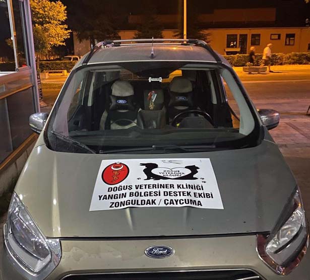 Zonguldak'in Çaycuma ilçesinde bulunan Doğuş Veteriner Kliniği personeli bir çok ilde devam eden orman yangınlarında zarar gören yaban hayvanları, sokak hayvanları ve evcil hayvanların gördükleri zararlara derman olabilmek için gönüllü olarak Manavgat’a gitti.