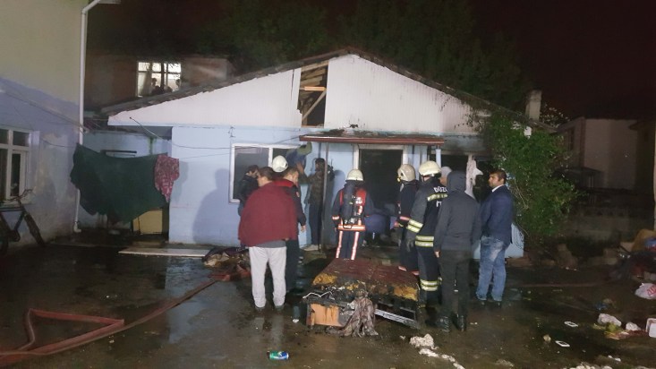 söndürdüler. Ev mahalle arasında olması nedeniyle mahalle sakinlerini sokağa