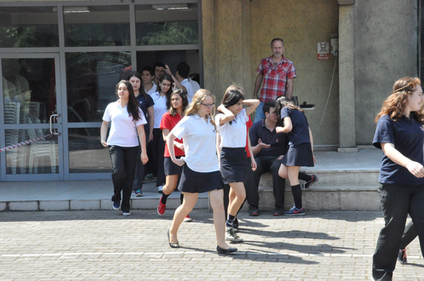 Olası bir yangın anında binanın nasıl boşaltılması gerektiği ve sonrasında yapılacaklarla ilgili bilgiler içeren tatbikatta, bina içerisinde yangında mahsur kalan yaralılar sedyeye bağlanarak binadan çıkarıldı. Daha sonra yaklaşık iki katlı bina yüksekliğinde binada mahsur kalanlar hava yatağına atladı. TED Koleji Öğretmenlerinden Şahin Bozkurt'un da beline bağlanan iple binadan tahliye edilmesi sağlandı. İple binayı tahliye etme sırasında bir itfaiye personelinin Türk Bayrağı açması, öğrenciler tarafından dakikalarca alkışlandı.