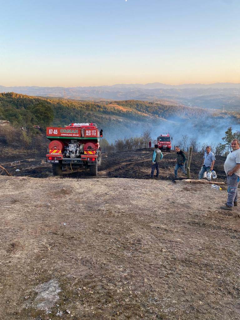 Karadeniz Ereğli ilçesine bağlı Yalnızçam köyünde başlayan orman yangınına ekipler müdahale ediyor.