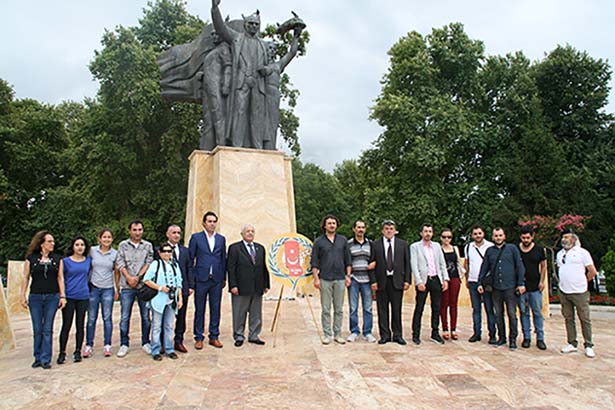 EGD Başkanı Günay ve basın mensupları daha sonra törene katılan gazetecilerle, Atatürk Anıtı önünde hatıra fotoğrafı çektirdi.