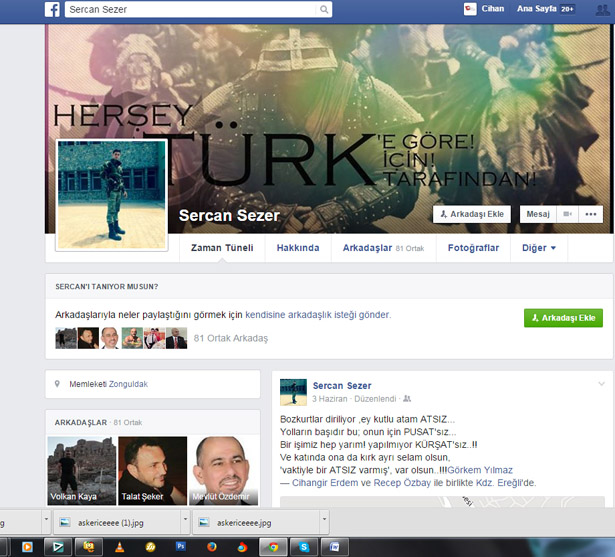 Uzman Çavuş Sercan Sezer'in, sosyal sitede şiir paylaştığı görüldü. Yaralı Uzman Çavuş Sercan Sezer'in son paylaşımı "Bozkurtlar diriliyor, ey kutlu atam ATSIZ... Yolların başıdır bu; onun için PUSAT'sız... Bir işimiz hep yarım! yapılmıyor KÜRŞAT'sız..!! Ve katında ona da kırk ayrı selam olsun, 'vaktiyle bir ATSIZ varmış', var olsun..!!!" oldu.
