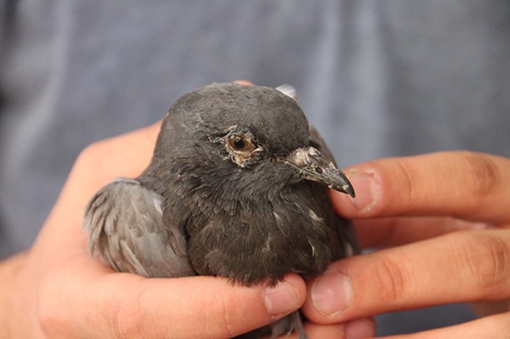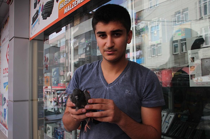 fark ettiği ve uçamadığını anladığı güvercini muhafaza altına almak için iş
