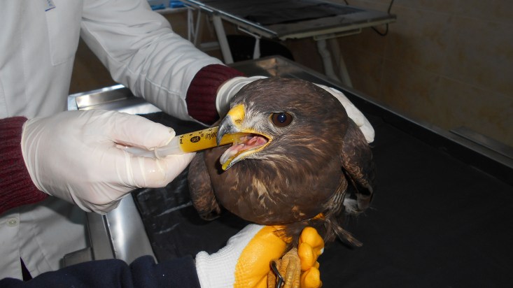 Sokak Hayvanları Rehabilitasyon ve Bakım Merkezi yaralı bir şahin kuşunu tedavi
