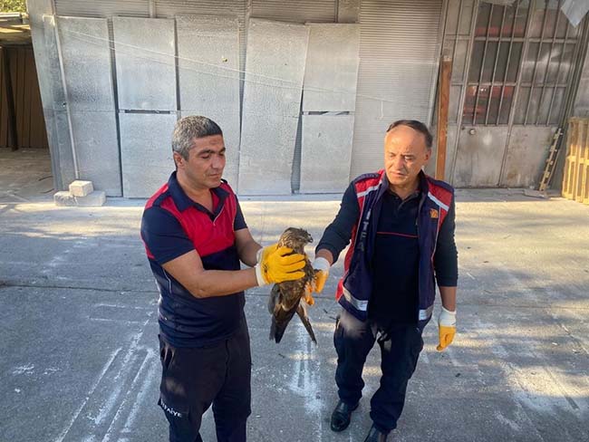 Zonguldak’ın Alaplı ilçesine bağlı Çay boyundaki bir firmanın bahçesindeki tellere takılarak yaralanan şahini görenler durumu itfaiye ekiplerine bildirdi. İhbar üzerine olay yerine intikal eden ekipler, yaralı şahini takıldığı tellerden kurtararak tedavisi için Alaplı Belediyesi Hayvan Barındırma, Tedavi ve Rehabilitasyon Merkezine götürüldü. Burada tedavisi yapılan şahin, daha sonra Doğa Koruma ve Milli Parklar yetkililerine teslim edileceği belirtildi.
