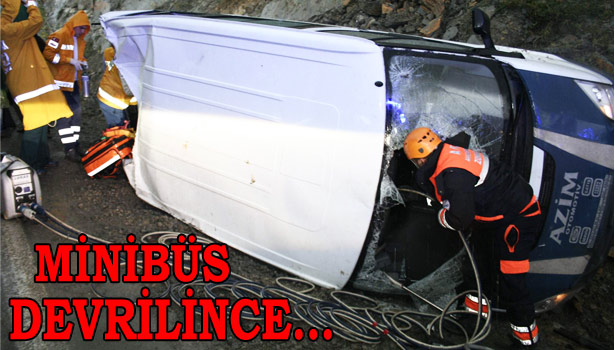 Zonguldak&8217;ta, devrilen minibüsün sürücüsü araç içerisinde sıkıştı. Yağmur nedeniyle güçlükle yürütülen kurtarma çalışmaları ile araçtan çıkarılan yaralı sürücünün soğuktan titrediği görüldü.