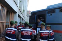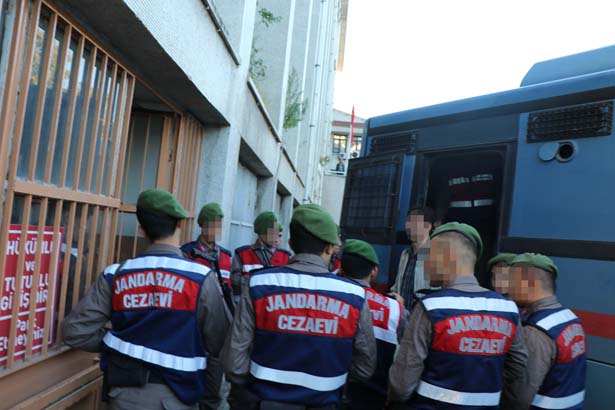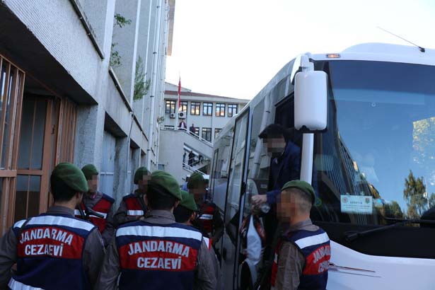 güvenlik önlemleri altında cezaevi araçlarıyla adliyeye getirildi. Sanıklar