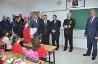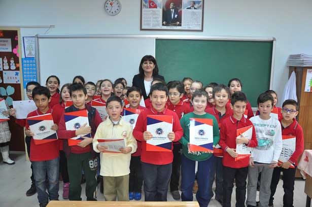 Ereğli İlkokulu, 3-B sınıfında gerçekleştirilen törende öğrenciler protokol üyelerini çiçeklerle karşılayan Öğrenciler haber yapmak için orada bulunan gazetecileri de unutmayarak onlara da karanfil verdiler.