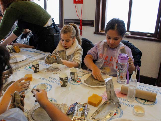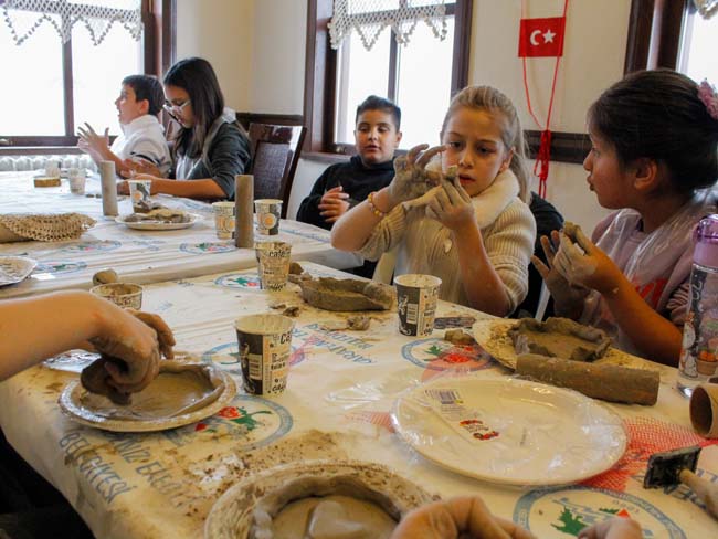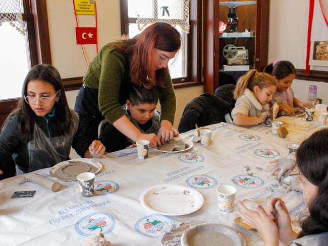 Kent Müzesi’nde gerçekleşen “Minik Eller Seramikte İlk Tabağım” atölyesinde bir araya gelen çocuklar eğitmenleri eşliğinde seramik ürünler hazırdılar.