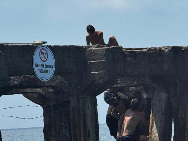 Filyos Belediyesi'nin yasakladığı ve bin 500 TL ceza öngördüğü iskeleye çıkmaya çalışan gençler; tehlikeye aldırmadan yasakları çiğnemeye çalıştı. Olay, çevrede bulunan diğer vatandaşlar tarafından hayretle izlendi. İskelenin tehlikeli olması sebebiyle çıkılmasına izin verilmemesine rağmen canlarını hiçe sayan gençler, tehlikeye davetiye çıkarttı. Bir süre iskelenin üzerinde duran gençler; vatandaşların uyarılarının ardından iskeleden ayrıldı.