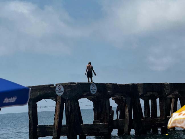 Zonguldak’ın Çaycuma ilçesine bağlı Filyos beldesinde gençler belediyenin yasakladığı iskeleye çıkarak, tehlikeye aldırmadan canlarını hiçe saydılar.