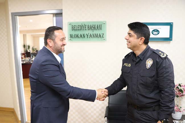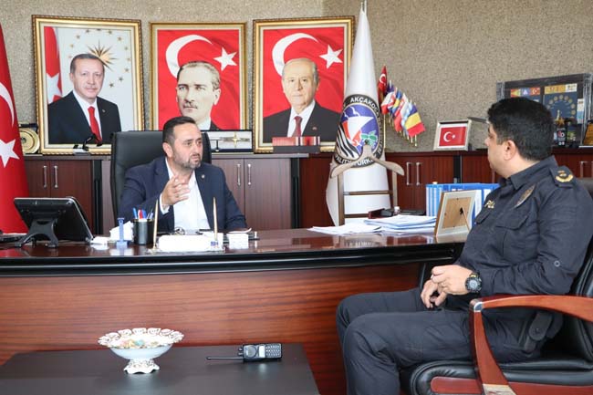 Akçakoca İlçe Emniyet Fatih Ünsal, Belediye Başkanı Okan Yanmaz’ı makamında ziyaret etti. Ziyaretten duyduğu memnuniyeti dile getiren Başkan Okan Yanmaz kentin yaşanabilirliğine asayiş yönünden katkı sağlayan Emniyet Müdürlüğü ile birlikte çalışmaya hazır olduklarını belirtti. Akçakoca’nın yaşanılabilir bir kent olduğunu hatırlatan Başkan Yanmaz, şehrin huzurunu ve güvenliğini sağlama amaçlı İlçe Emniyet Teşkilatı ve Akçakoca Belediyesi olarak uyum içinde gece gündüz çalıştıklarını ifade etti.