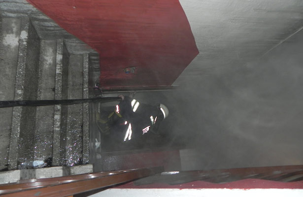 kattan yükselen dumanlar binayı kapladı. Soğutma çalışmasının yapıldığı sırada