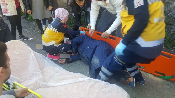 kamyonetin yaşlı kadına çarparak altına aldığı, kadını kurtarmak için sürücünün