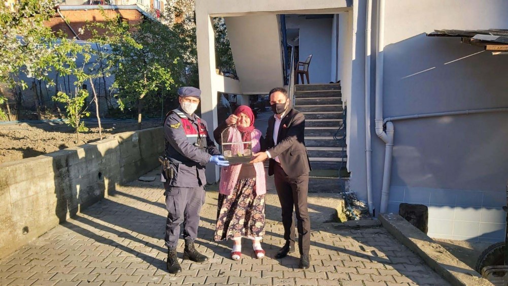 Zonguldak'ta, yeni tip korona virüs (Covid-19) tedbirleri kapsamında sokağa çıkamayan yaşlı kadının muhabbet kuşu isteğini ekipler yerine getirdi. Karaman beldesinde ikamet eden 66 yaşındaki Şahinde Sağlam, Vefa Sosyal Destek Grubunu arayarak muhabbet kuşu istedi. Sağlam'ı ziyaret ederek Zonguldak İl Jandarma Komutanlığı ve Vefa Sosyal Destek Grubu ekipleri, daha sonra muhabbet kuşunu Sağlam'a teslim etti. Şahinde Sağlam isteğini kırmayan muhabbet kuşunu getiren ekiplere teşekkür etti.