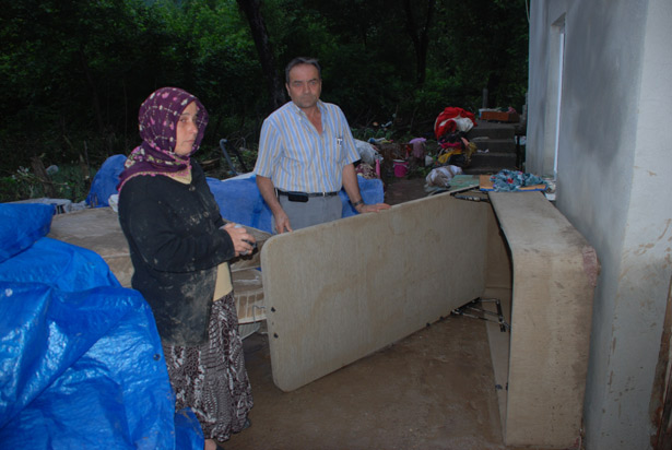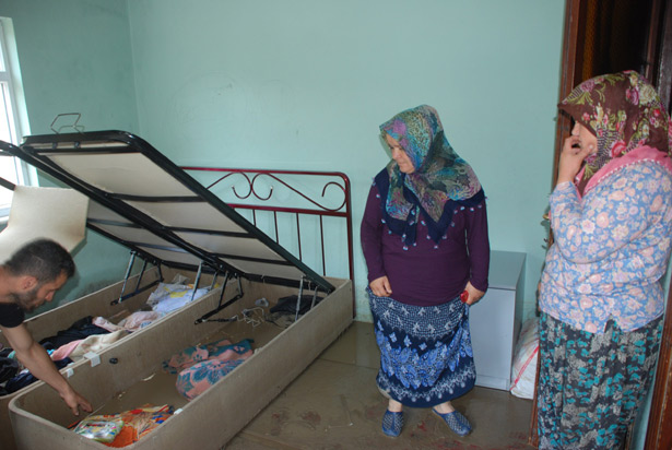 seralarda sel sularından nasibini aldı. Evlerinin içerisindeki eşyalar çamur