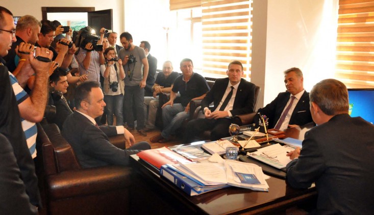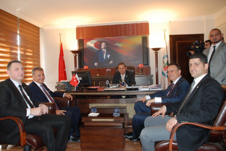 Yaz Futbol Okulunun açılışının ardından Karadeniz Ereğli Belediye Başkanı Opr. Dr. Hüseyin Uysal'ı makamında ziyaret eden Başkan Orman ve Adik, bir süre sohbet ettiler.