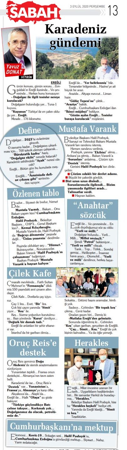 Sabah Gazetesi Yazarı Yavuz Donat bugün de köşesinde Kdz. Ereğli’yi yazdı.