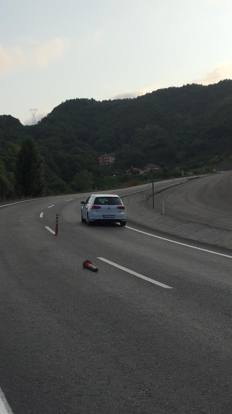 Bu yolda kaza yapiyordum bianda yol bölünmüs ve biz adamla kafa kafaya gekdik benim bulundugum yerde ne duba vardi nede bi ikazla ikgili tabela sonradan dubalar cikmaya basladi karismiza yetkilileri aradik biz ilgencez dediler gordukki hala ayni yazik