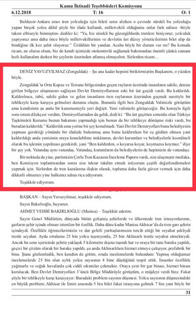 6 Aralık 2018 tarihinde TCDD'nin denetlendiği Meclis Kit Komisyonu toplantısında da bölgedeki üst geçit ve ikaz eksikliklerini dile getiren Yavuzyılmaz, konuya ilişkin şu ifadeleri kullanmıştı: