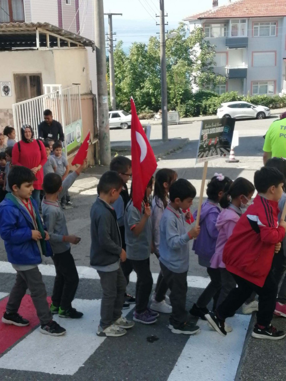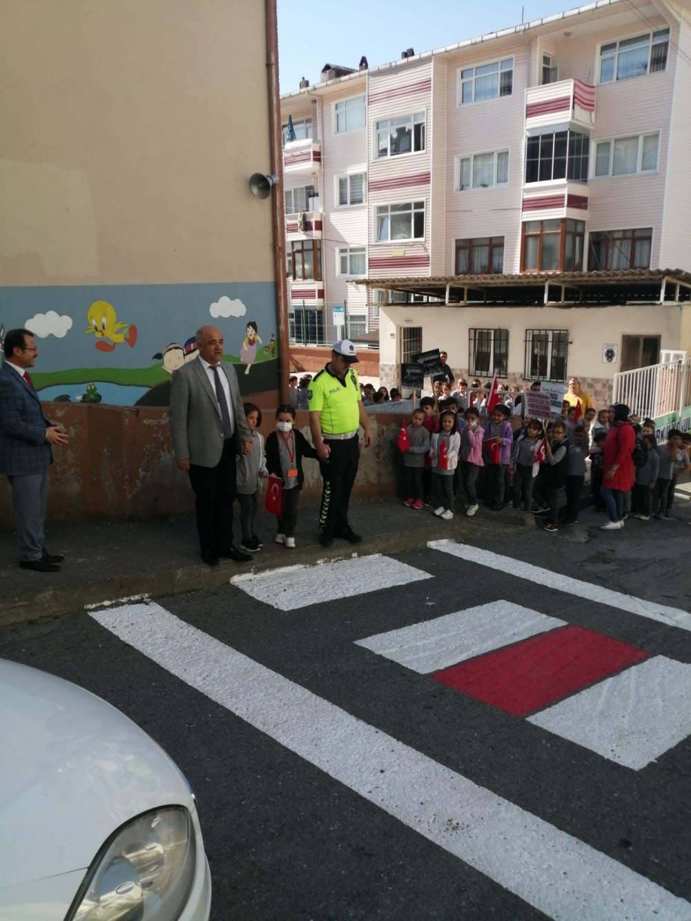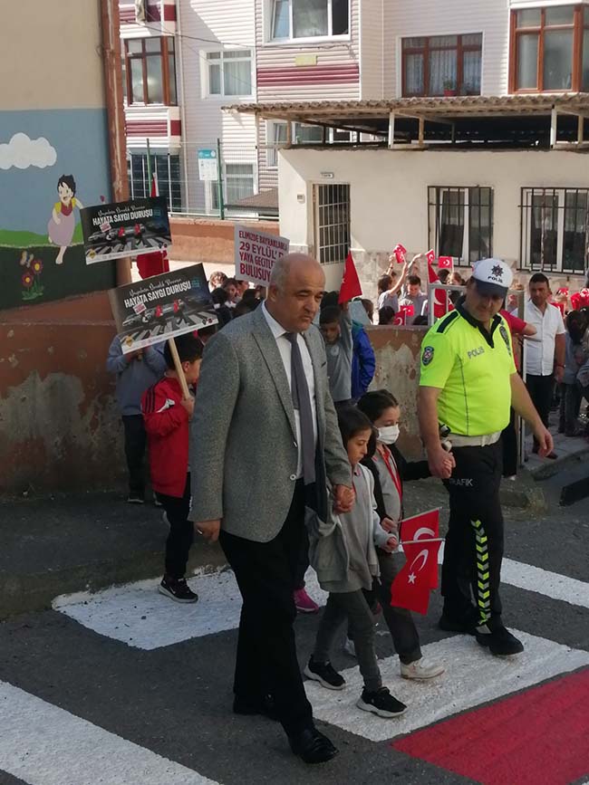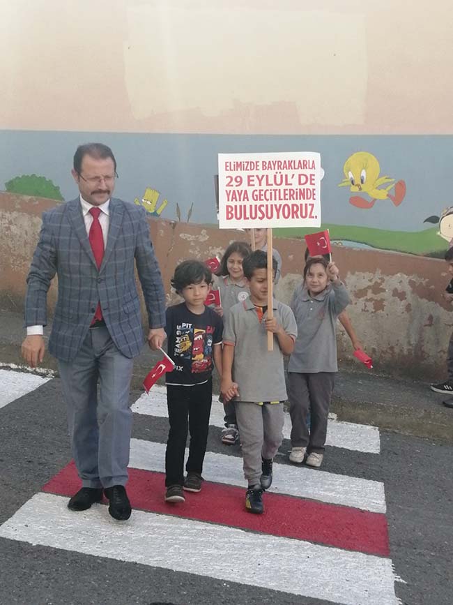 Zonguldak’ın Alaplı İlçesindeki Atatürk İlkokulu önünde Kaymakam Vedat Yılmaz ile İlçe Milli Eğitim Müdürü Cevat Çevik, öğrencilerle birlikte boyanan yaya geçidini üzerinden öğrencilerle birlikte üzerinden geçti. Alaplı dahil Türkiye çapında yayalara karşı yaptığı davranışın örnek olduğunu belirten Kaymakam Yılmaz, "Alaplı, Türkiye çapında örnek bir tutum ve davranış içinde. Çünkü Alaplı’ya geldiğimiz zaman hepimiz görüyoruz ki yayalarımız yola adım attığı zaman sürücülerimiz saygılı ve hemen duruyorlar. Yayalara yol veriyorlar" dedi.