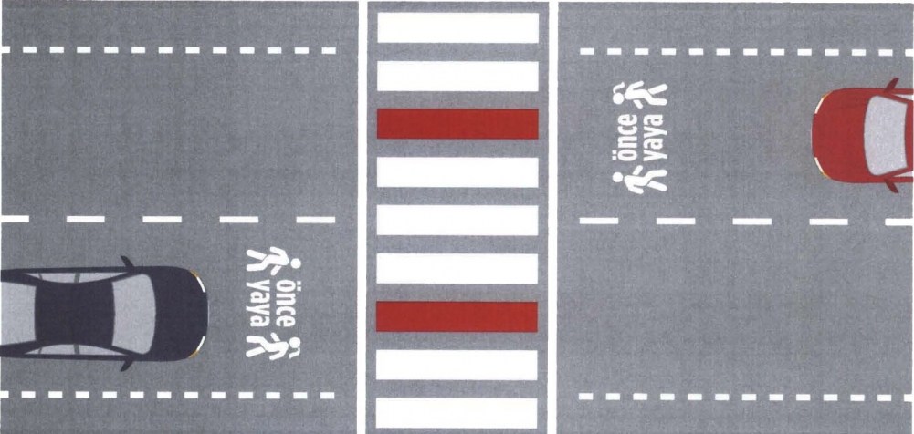 “Bilindiği üzere ülkemiz karayollarında yayaların trafik güvenliğinin sağlanarak can kayıplarının azaltılması amacıyla,26 Ekim 2018 tarihinde 2918 sayılı Karayolları Trafik Kanunu’nun 74’üncü maddesinde yapılan düzenleme ile “sürücüler, görevli bir kişi veya ışıklı trafik işareti bulunmayan ancak trafik işareti veya levhalarıyla belirlenmiş kavşak giriş ve çıkışları ile yaya ve okul geçitlerine yaklaşırken yavaşlamak, varsa buralardan geçen veya geçmek üzere bulunan yayalara durarak ilk geçiş hakkını vermek zorundadırlar.” Hükmü getirilmiştir. Bu düzenlemeden hareketle; İçişleri Bakanlığımızca “Öncelik Hayatın, Öncelik Yayanın” sloganıyla 2019 yılı“ Yaya Öncelikli Trafik Yılı ” olarak ilan edilmiş ve “Trafikte Yaya Önceliği Kampanyası” hayata geçirilerek 6 Şubat 2019 tarihinde “Devletin tüm unsurları ile farkındalık eyleminde olduğunu göstermek” amacıyla ülke genelinde eş zamanlı olarak etkinlikler düzenlenmiştir. Bu etkinliklerin devamı niteliğinde olan ve bu defa yaya güvenliğini sağlamak üzere “Devletin tüm unsurlarıyla konunun takipçisi ve nöbette olduğunu göstermek” için 02 Ekim 2019 tarihinde ülke genelinde “Hepimiz Yaya Geçitlerindeyiz” sloganıyla “Yaya Güvenliğinin Nöbetçisiyiz” kampanyası kapsamında farkındalık etkinlikleri eş zamanlı olarak gerçekleştirilmiştir. 2021 yılı süresince yürütülecek faaliyet ve destekleyici kampanyaların etkisini artırmak, yaya ve okul geçitleri öncesinde sürücülerin yer/zemin işaretlemeleriyle bir kez daha uyarılarak dikkatlerini daha üst düzeye çıkarmak, bu alanlarda yavaşlamalarını ve yayalara ilk geçiş hakkını vermelerini sağlamak amacıyla, tüm illerimizde eş zamanlı olarak Devletimizin tüm unsurları ile farkındalık eyleminde olduğunu göstermek amacıyla etkinlikler düzenlenecektir. Bu kapsamda Yaya önceliği konusunda toplumda farkındalığı en üst düzeye çıkarmak ve yaya önceliğine verilen önemi vurgulamak amacıyla; 27-28-29 Mart 2021 tarihlerinde EK-1’de gönderilen görsel örnekleri kullanılacaktır. 2) 30 Mart 2021 Salı günü 12.00-15.00 saatleri arasında ışıksız yaya geçitlerinde bulunan beyaz şeritlerden ortadaki şerit ekte gönderilen görsel EK-2 sembolik olarak kırmızıya boyanacak ’’Yaya Önceliği Kırmızı Çizgimizdir’’ mottosu ile ’’Yaya Önceliği’’ vurgusu yapılacaktır