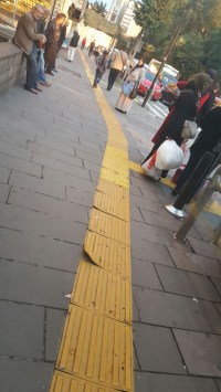 Ereğli'de yeniden düzenlenen yaya kaldırımlarına görme engelliler için konan sarı renkli yürüme yolunda ki deformasyon yayaların zor anlar yaşamasına neden oluyor. Özellikle çarşı merkezi Devrim bulvarında yayaların en çok kullandığı kaldırımlarda uçları kalkan sarı renkli bantlar, yayaların takılıp sendelemesine neden oluyor. Konuyla ilgili olarak haber merkezimize ulaşan vatandaşlar sorunun giderilmesi için yetkililerden yarım beklediklerini iletirken " Sarı renkli yürüme bantları eskimiş ve özelliklerini kaybetmiş. Bunların bir an önce değişmesi gerekiyor. Özelikle yaşlı teyzeler ve amcalar bunlara takılıp düşme tehlikesi yaşıyor. Bazıları da düşmekten kurtulamıyor. Yetkililerin bir an önce bu sarı renkli yürüme bantlarını değiştirmesini istiyoruz" dediler.