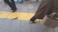 Zonguldak'ın Ereğli ilçesinde görme engelliler için kaldırıma konan yürüme yolunda ki deforme olan sarı renkli bantlar yayaların düşmesine neden oluyor.