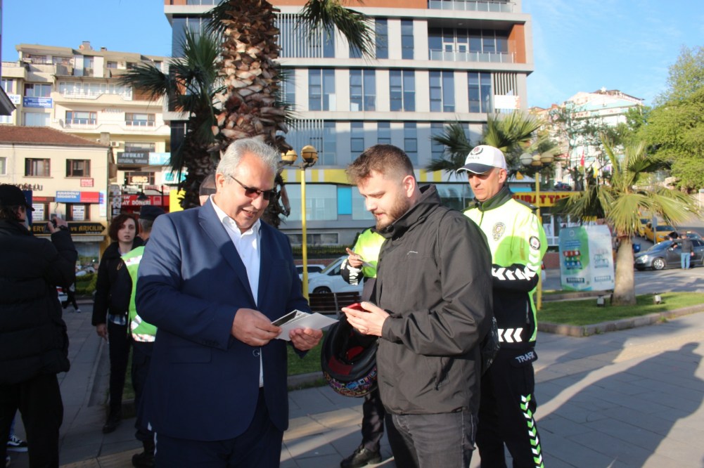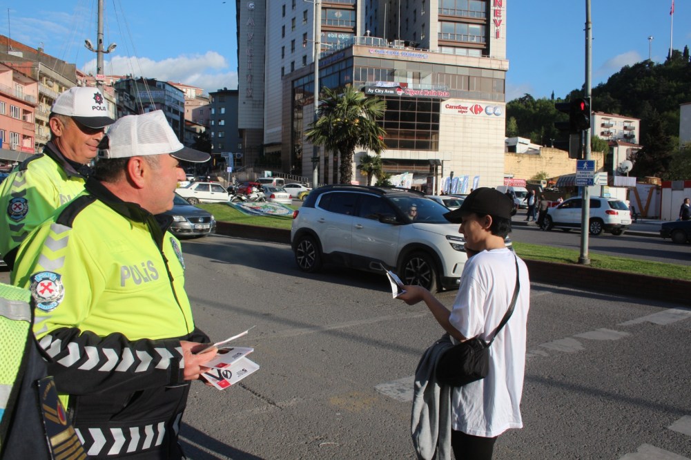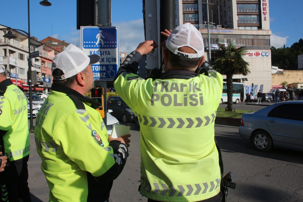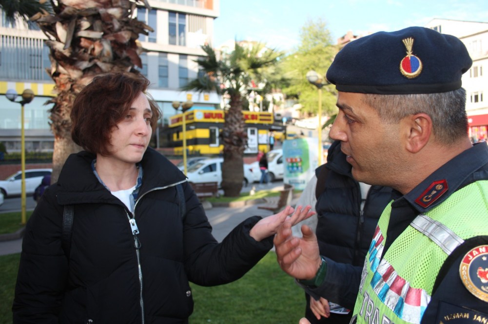 Karadeniz İlçe Kaymakamı Yapıcı’nın vatandaşlara ‘yayaların’ kırmızı ışıkta geçmemesini anlattığı sırada yayalar kırmızı ışıkta geçti. Birkaç dakika sonra kırmızıda geçen 2 çocuğa az kalsın otomobil çarpıyordu.