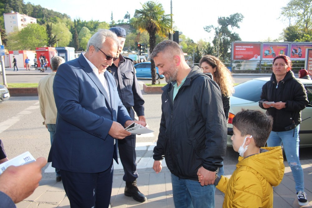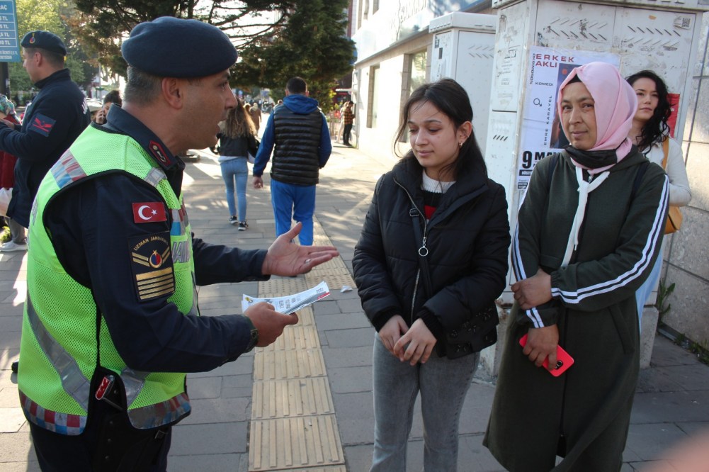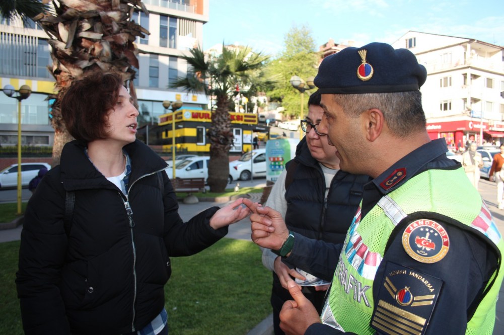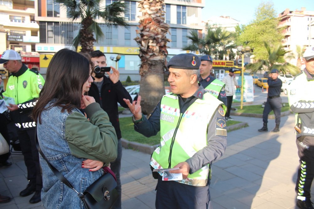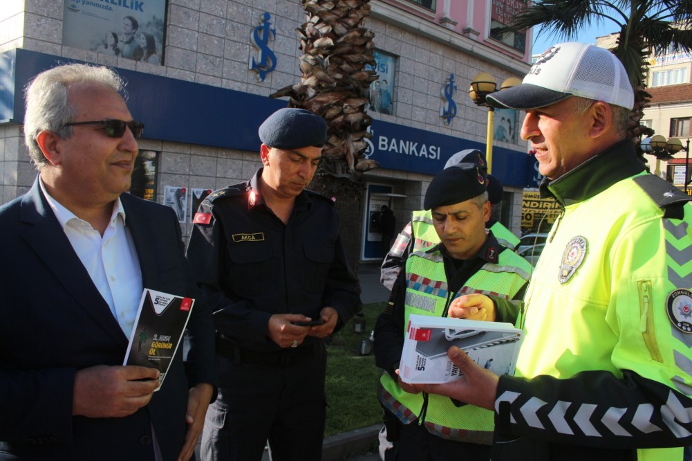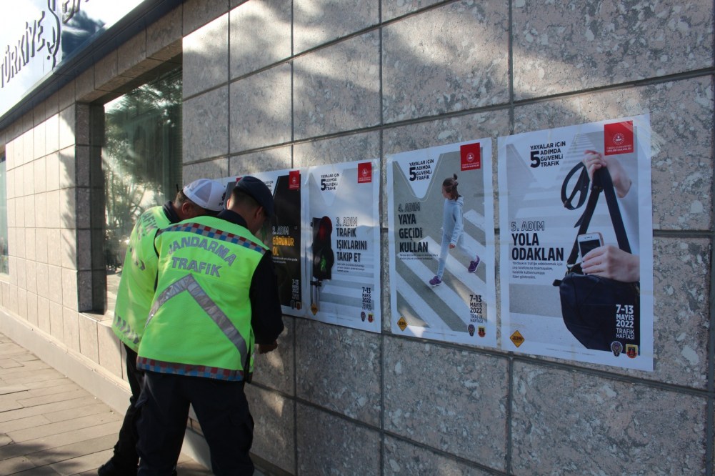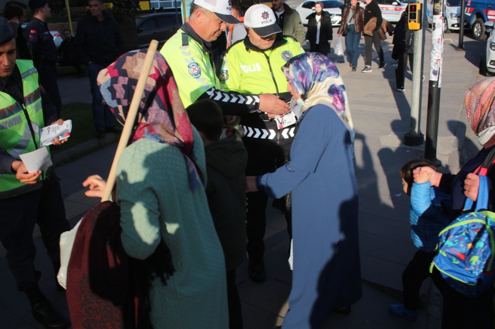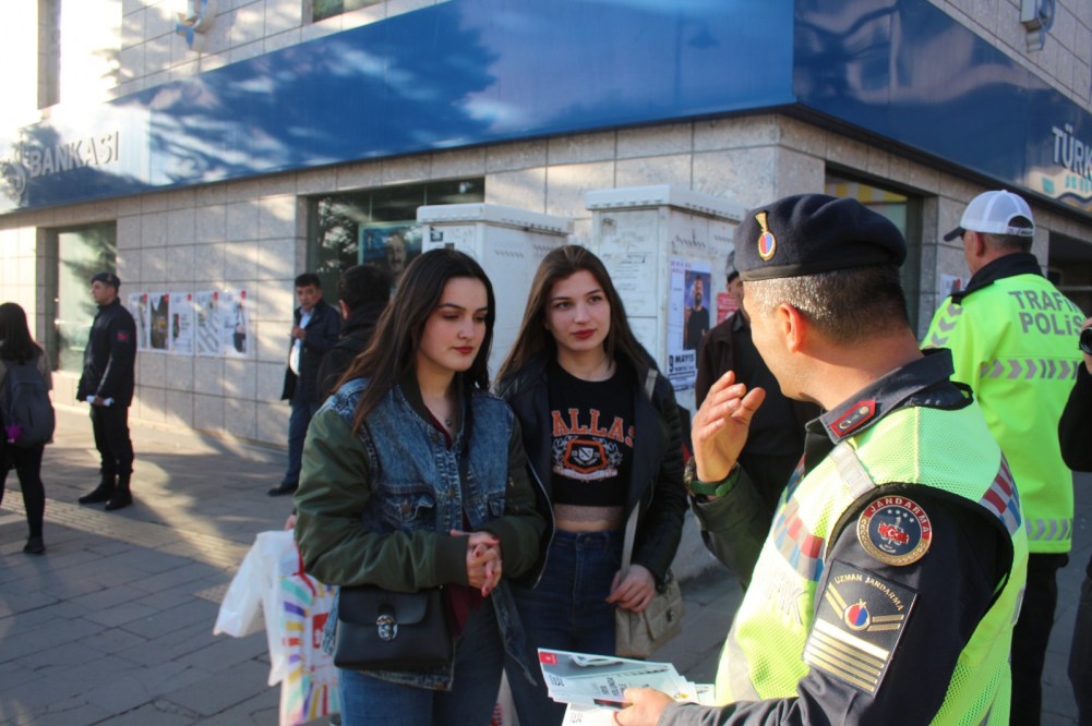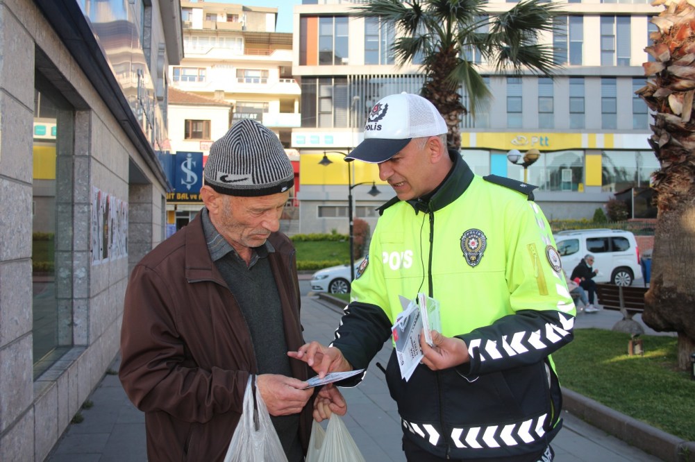 İlçe Kaymakamı Mehmet Yapıcı, İlçe Jandarma Komutanı Üst Teğmen Ali Akçay ve İlçe Emniyet Müdürü Hasan Ünlü’nün Devrim bulvarındaki trafik ışıklarında gerçekleştirdiği uygulama sırasında, içinde 5 trafik kulanın yazılı olduğu broşürler yayalara verildi. Sözlü olarak da bilgilendirilen yayaların; yaya yolunda yürümeleri, karanlıkta anlarda görünür olmaları, trafik ışıklarını takip etmeleri, yaya geçidini kullanmaları ve bu esnada başka bir hiçbir şeye odaklanmamaları istendi.